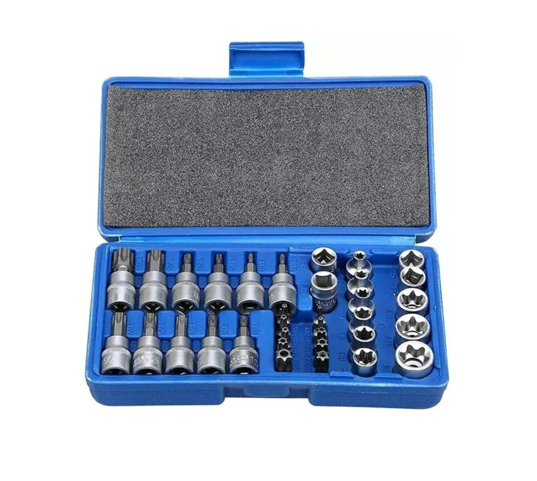 34-delni komplet muško ženskih toreks ključevi, odličan za sve automehaničare. Veoma kvalitetan i precizno izradjen set torx(toreks) bitovi i gedora. Komplet sadrži: