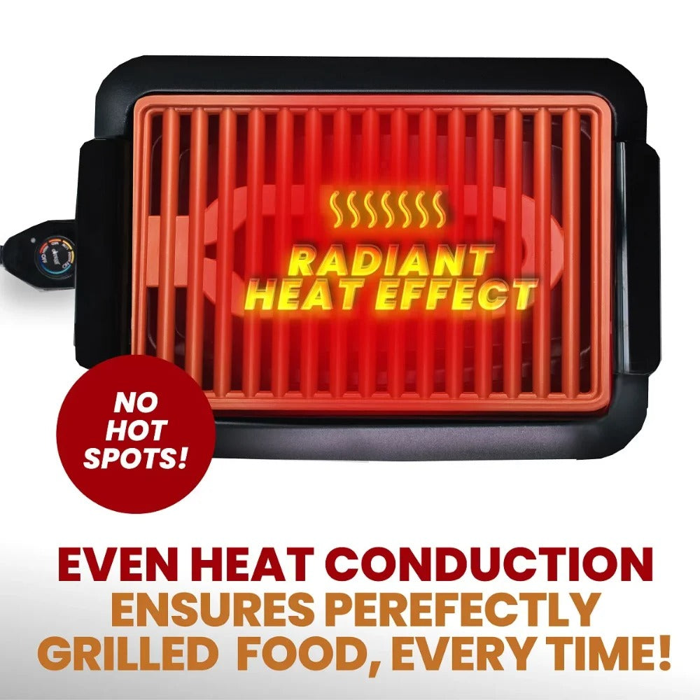Električni roštilj bez dima omogućava vam da pripremate ukusna jela sa roštilja bez vatre i dima. Ovaj jedinstveni model kućnog električnog roštilja sa titanijum-keramičkom rešetkom je savršen za unutrašnju i spoljašnju upotrebu.