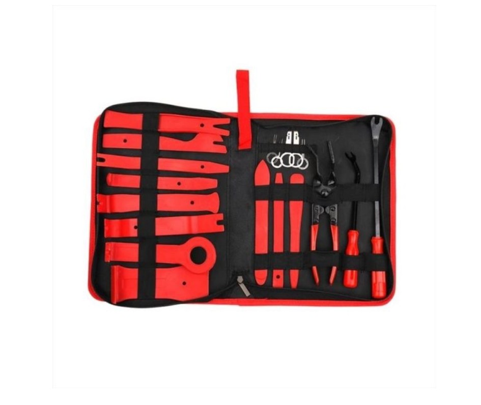 Vrhunski set alata za za demontažu tapacirunga, lajsni i CD plejera u automobilu. Set se sastoji od 19 komada: