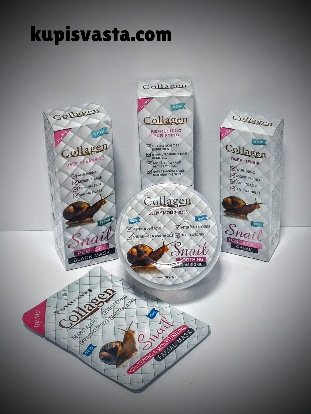 - Kolagenski puž serum za lice je moćan hidratantni serum protiv starenja koji rešava različite probleme kože kao što su bore, suvoća kože, staračke pege, tupa koža, pigmentacija itd